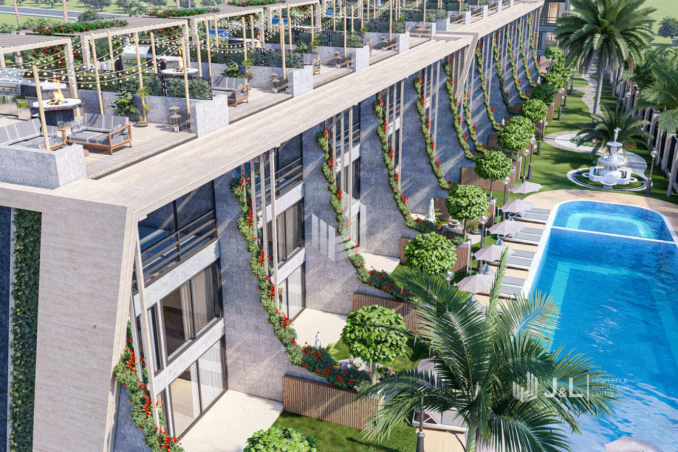 Курортная резиденция находится всего в 250 метрах от Средиземного моря - недвижимость в этом жилом комплексе станет отличной инвестицией в недвижимость на Северном Кипре