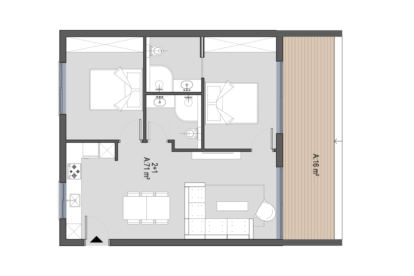 от 239 000£ / 279 580€ | | | | | | Апартаменты 2+1 | | 2 спальни и кухня-гостиная площадь 71 м2 балкон 16 м2 два санузла