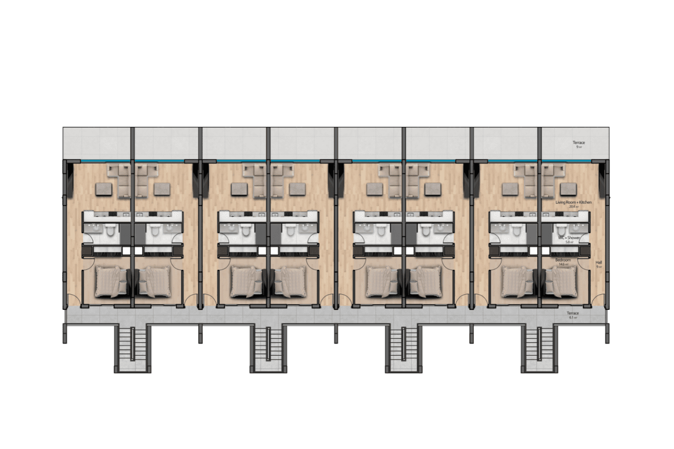 от 84 500£ | | | | Апартаменты 1+1 | | одна спальня и кухня-гостиная площадь 56 - 70 м2 один санузел терраса 8,4 - 29 м2