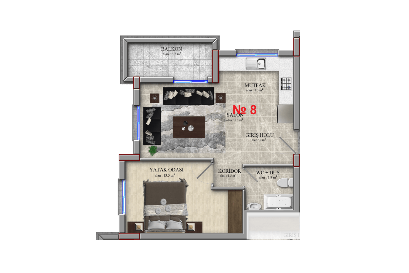 | | №1 Готовые апартаменты в Алсаджак | | В быстрой пешей доступности от проекта находится вся повседневная, социальная и курортная инфраструктура. В нескольких минутах езды на авто расположен отель 5* Merit Royal Premium, а также казино | | | | | | | Апартаменты 1+1 | | одна спальня и кухня-гостиная площадь 56 м2 1 санузел терраса 6,7 м2