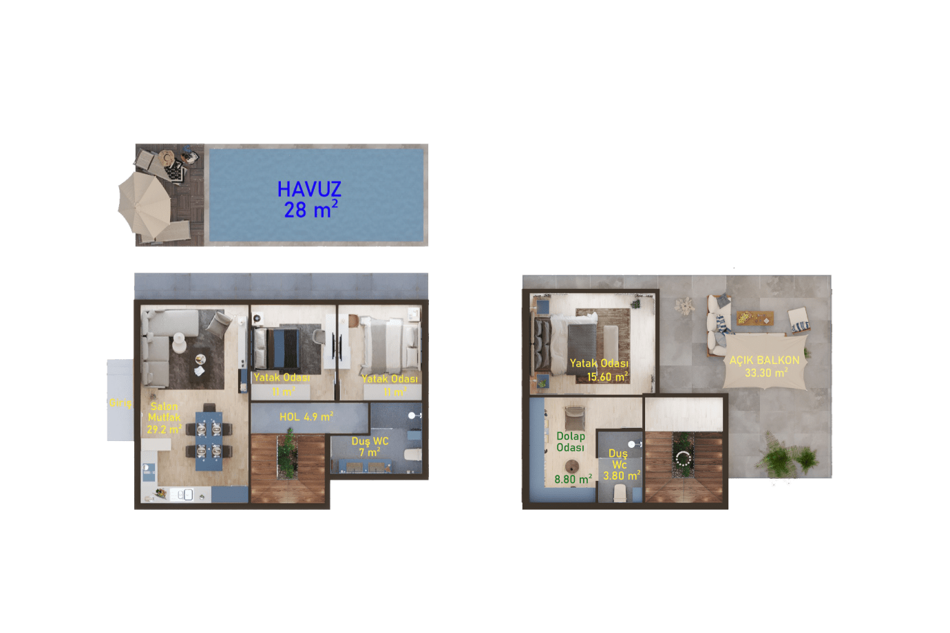 1.430.000 £'dan başlayan fiyatlarla | | | | | | №4 Marina Manzaralı Villa | | Her villada üç yatak odası, mutfaklı geniş bir oturma odası, çatı terası ve özel bahçe bulunmaktadır. Ayrıca 24 m2'lik özel yüzme havuzunuz da emrinizde olacaktır. | | | | | | | villa 3+1 | | 3 yatak odası ve mutfak-oturma odası alan 200 m2 2 banyo