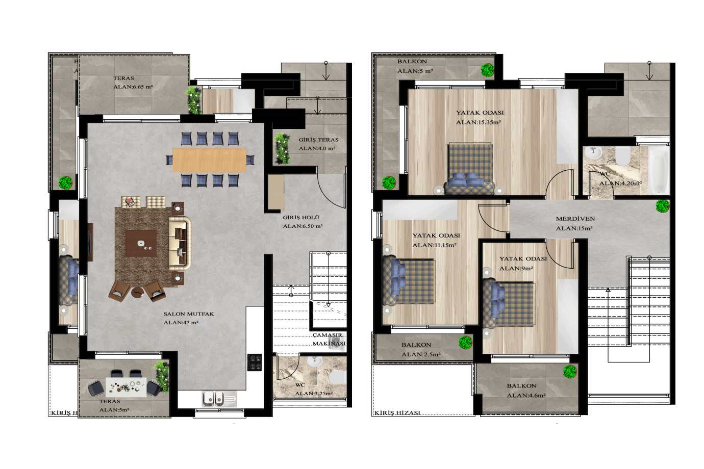 168 m2'ye kadar bahçe