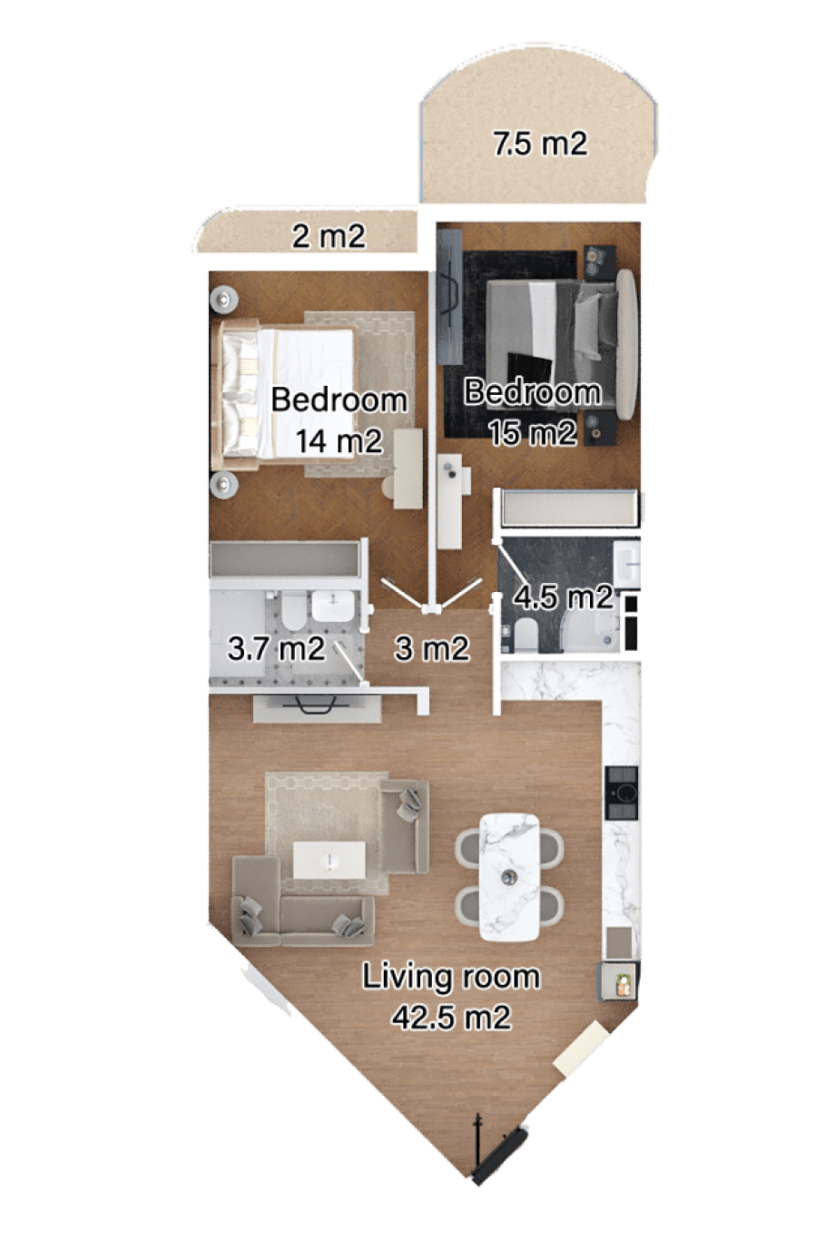 от 425 000£ / 505 180€ | | | | | | №4 Апартаменты по доступной цене в Искеле | | Этот проект подойдет как для постоянного проживания на острове, так и для инвестиций с целью сдачи в красткосрочную аренду туристам. | | | | | | | 30% рассрочка до ключей + 40% на 36 мес. после ключей | | | | | | Апартаменты 2+1 | | две спальни и кухня-гостиная площадь 78 м2 один санузел
