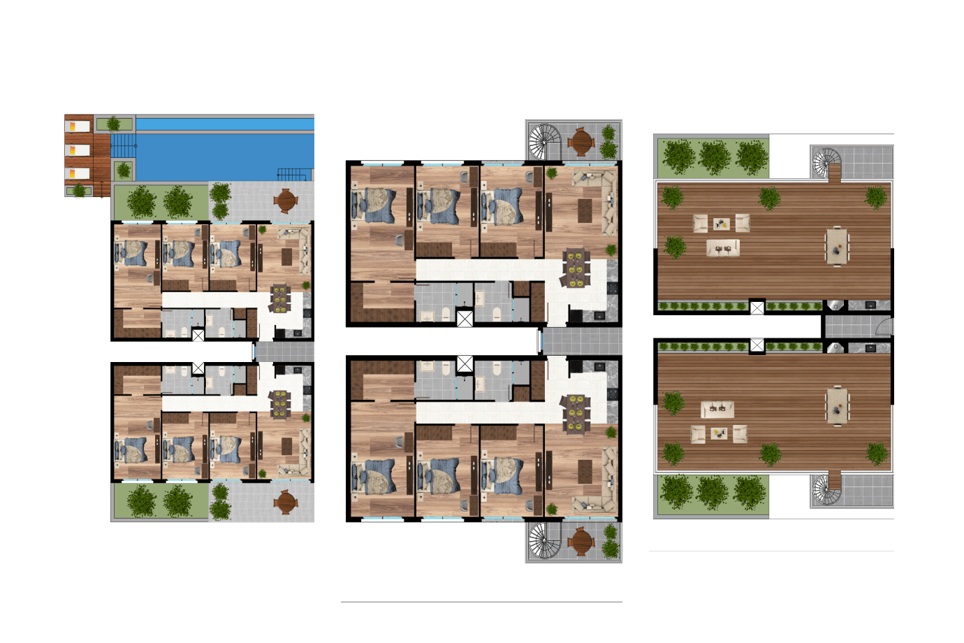 На территории комплекса будет построен большой общий бассейн и разбиты вечнозеленые сады. В быстрой транспортной доступности от проекта находится вся повседневная инфраструктура, включая детские сады, школы и университет. | | | | | | | рассрочка до 24 месяцев под 0% | | | | проект сдается в сентябре 2025 года | | | | | | Апартаменты 2+1 | | 2 спальни и кухня-гостиная площадь 77,5 - 80 м2 один санузел