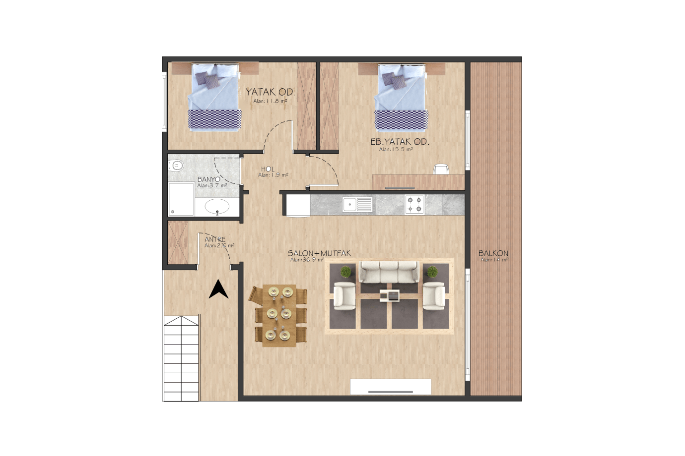 от 144 950£ / 179 590$ | | | | | | Апартаменты 2+1 | | две спальни и кухня-гостиная площадь 75 м2 два санузла терраса 10 м2