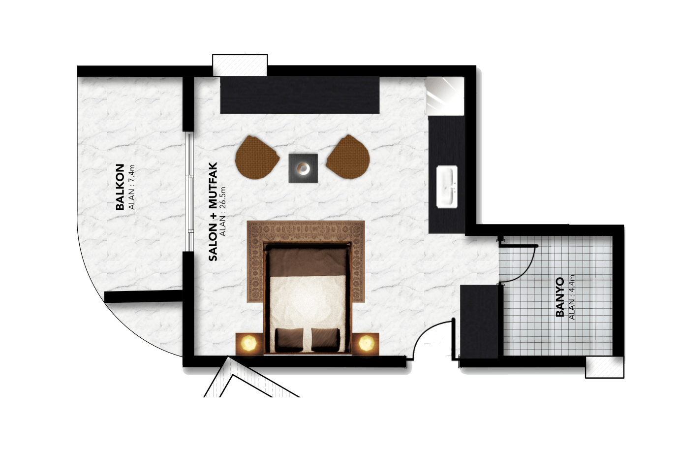 от 111 000£ / 129 850€ | | | | | | №4 Апартаменты отельного типа | | Курортные апартаменты на первой береговой линии в самом тихом районе Северного Кипра на побережье Морфоу | | | | | | | проект сдается в июне 2026 года | | | | | | Апартаменты 1+0 | | классическая студия площадь 30 м2 один санузел