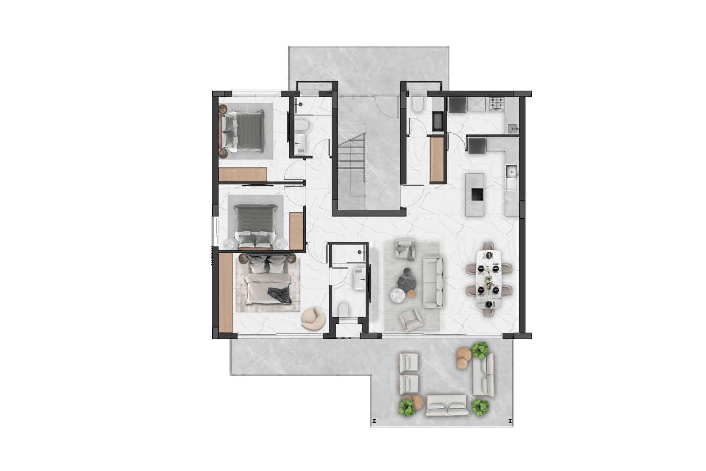 Комплекс апартаментов и вилл в Татлысу станет отличной инвестицией в курортную недвижимость Северного Кипра благодаря локации - всего в нескольких минутах от проекта находится Средиземное море и несколько уединенных бухт.